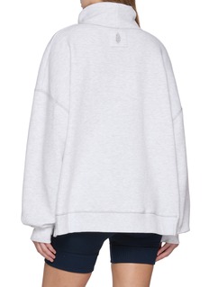 A laid-back revival of ‘80s athleisure, this FP Movement set pairs a slouchy turtleneck sweatshirt with coordinating rib-trim bike shorts for an effortlessly cool, throw-on uniform. The top is cut from a soft cotton blend with dropped shoulders and bold collegiate lettering, while the stretchy cotton shorts offer easy movement and a sculpted, comfortable fit. Perfect for warming up, cooling down, or weekend lounging with a retro twist.