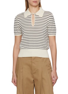 FRAME - The Keyhole Striped Knit Polo Shirt