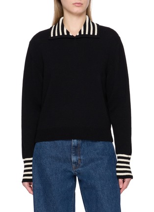 Tailored in high-twist cotton yarn, this knit sweater channels FRAME’s refined take on nautical codes. Contrast striping at the pointed collar and elongated cuffs lends graphic polish, making it an effortless choice with denim or tailored trousers for off-duty sophistication.