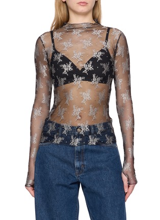 This exquisite Free People mesh top is a celebration of delicate design and intricate detail. It features a stunning pattern of silver snowflake-like embroidery that beautifully contrasts against the sheer black background, creating a look of sophisticated allure. The long sleeves and high neckline enhance the elegant, streamlined silhouette, making it perfect for evening wear or special occasions. Layered over a simple bralette or camisole, this top offers both modesty and a tantalizing peek of skin.