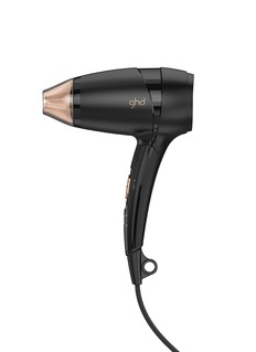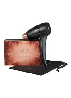 Have fun with styling anytime anywhere with ghd's limited edition travel hairdryer gift set featuring the new flight® copper luxe hairdryer. Foldable to take along in your hand luggage using the coordinating dust bag, it has a powerful motor with dual voltage switches and temperature controls to set all of your desired styles in place even when on the go.