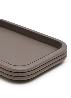 This line was inspired by the 'stacked' design often seen at the base of some buildings in Italy, as well as Salvatore Ferragamo's celebrated heel. This collection has an identical recurring motif, layered and highlighted by deliberately knick legs, that lends a delicate graphic line.