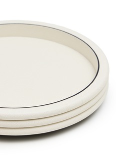 This line was inspired by the 'stacked' design often seen at the base of some buildings in Italy, as well as Salvatore Ferragamo's celebrated heel. This collection has an identical recurring motif, layered and highlighted by deliberately knick legs, that lends a delicate graphic line.