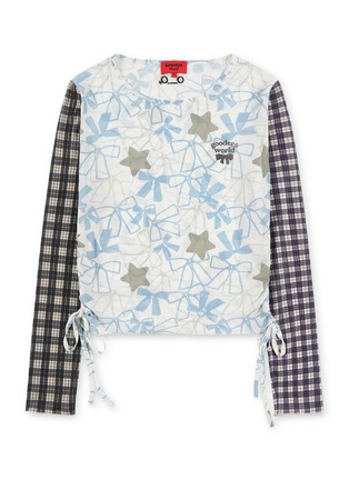 Playful contrasts define this long-sleeve top by GOODBAI, where an all-over bow and star print meets mismatched plaid sleeves. Finished with adjustable side drawstrings, the slim silhouette adds a touch of whimsy to layered looks or stands alone as a statement piece.