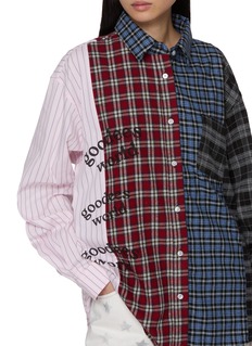 Thoughtful details and bold creativity make GOODBAI a go-to for those who embrace individuality and effortless style. Crafted with a unique patchwork design, this shirt perfectly balances a playful charm with a contemporary edge.