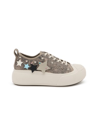 Step into whimsical style with these Lane Crawford x GOODBAI sneakers, featuring a textured canvas upper adorned with playful star appliqués and sparkling embellishments. The chunky platform sole adds bold contrast, making these sneakers a standout statement for effortless, artistic flair.