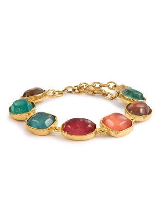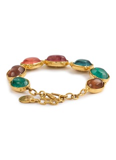 Presenting an iconic piece of jewellery from the House of Goossens, the Cabochons bracelet is truly sublime with its exquisite use of rock crystal. This piece, part of the Cabochons collection, showcases the beauty of hand-dyed crystals that come in a captivating array of colours. Each crystal is a joyful gem, adding a touch of vibrancy and playfulness to this remarkable bracelet.
