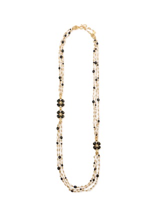 Timeless whimsy meets artisan luxury in Goossens’ Trèfle necklace, where hand-carved clover motifs and shimmering rock crystal intertwine with lustrous pearls. The golden chains and delicate floral clusters evoke a sense of poetic charm, making it a treasured piece for those who cherish symbolic elegance and heritage craftsmanship.