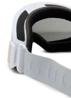 These Gucci ski goggles feature a sleek, futuristic design with a large, mirrored lens that offers comprehensive eye protection and visibility. The streamlined, modern aesthetic is highlighted by the classic Gucci branding on the strap, providing a stylish edge while ensuring functionality on the slopes. Perfect for winter sports enthusiasts who do not want to compromise on style or performance, these goggles are designed to make a statement while offering top-tier comfort and durability.