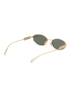 These Gucci sunglasses enchant with their exquisite gold-tone metal frames and sophisticated oval lenses, complemented by ornate crystal embellishments along the temples for a touch of glamour. Ideal for those who covet accessories that blend classic elegance with impactful design, these sunglasses offer full UV protection, ensuring both style and functionality are impeccably addressed.