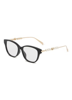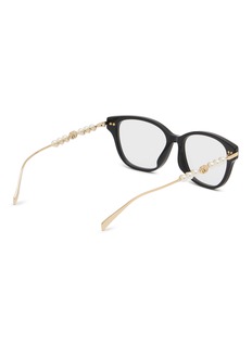These Gucci eyeglasses offer a harmonious blend of classic sophistication and modern glamour. The large black frames provide a bold aesthetic, while the intricate pearl and gold bead detailing on the temples add a touch of luxury. Ideal for the fashion-savvy individual, these glasses not only enhance vision but also serve as a chic accessory, elevating both casual and formal looks with Gucci's iconic flair.