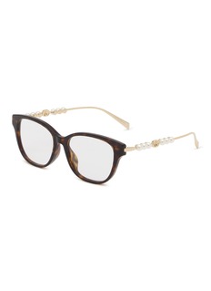 These Gucci eyeglasses blend timeless elegance with a hint of glamour. The classic tortoiseshell frames are beautifully accented with delicate pearl detailing on the temples, enhancing the sophisticated silhouette. Perfect for those who seek a stylish yet functional accessory, these glasses offer a chic way to accentuate any look, whether for professional settings or casual outings.