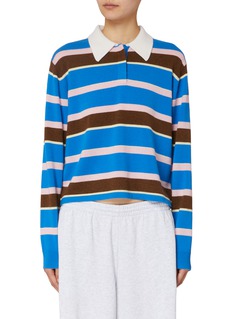 This Guest in Residence cashmere polo sweater captivates with its vibrant blend of blue, brown, and pink stripes, offering a fresh take on classic style. The luxurious cashmere fabric ensures supreme comfort and warmth, perfect for seasonal transitions.