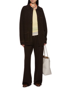 Cut from pure cashmere, this jacket by Guest In Residence fuses utilitarian structure with luxury craft. Defined by contrast topstitching and patch pockets, it echoes the ease of workwear while offering refined softness, making it an effortless piece to transition from casual days to elevated layering.