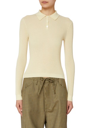 5. Long Sleeve Shrunken Cashmere Knit Polo Top