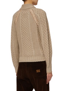 Guest In Residence distils heritage knitwear codes into this Marlowe cardigan, defined by sculptural cable textures, a softly rolled shawl collar and fabric-covered buttons. Balanced and tactile, it layers seamlessly over shirts or stands alone with tailored trousers.