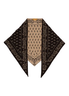 Rendered in a contrasting palette of deep brown and beige, this cashmere shawl redefines the classic bandana with a refined edge. The reversible jacquard knit makes it a versatile styling accent, lending warmth and graphic character to both pared-down and layered looks.
