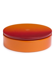 The box unfolds as a vibrant spectrum of tropical hues, its colours blend seamlessly into a gentle gradient. The piece utilizes a gradient technique between bright orange and red hues. The box's lid is adorned with a detail created using an intricate colour engraving technique for a touch of elegance.