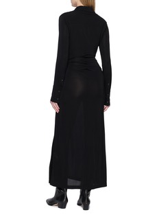 Embrace versatility and innovation with Helmut Lang's shirt dress. This unique piece combines the timeless appeal of a shirt with a twisted design. Perfect as a standalone piece, this piece can be elevated with a pair of point-toe boots.
