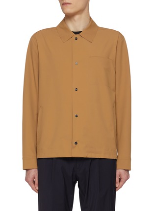 A refined take on utilitarian layering, this Herno shirt jacket is tailored in double bi-stretch fabric for enhanced comfort and movement. Polished with logo-engraved press studs, it’s the ideal top layer for transitional months, from gallery days to casual office edits.
