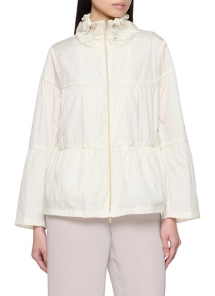 Lightweight and quietly technical, this windbreaker from Herno is shaped with softly gathered panels that lend volume and movement to a cropped silhouette. Crafted in crisp polyamide, it layers effortlessly over everyday looks—ideal for transitional weather and refined travel dressing.