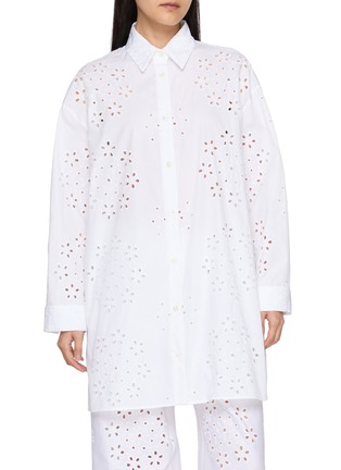HERNO - Long Sleeve Eyelet Embroidered Cotton Blend Shirt