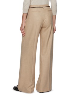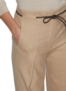 Cut from bi-stretch wool woven with subtle lurex, these Herno trousers balance refined tailoring with a touch of radiance. Defined by sharp pleats and a fluid straight leg, the silhouette is cinched with a slim belt—perfect for elevating daytime polish or evening ease.