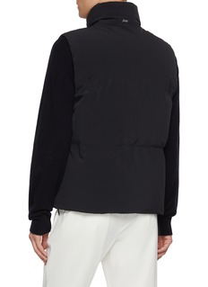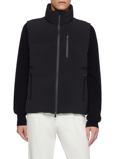 Balancing sleek minimalism with technical function, this Herno vest is crafted from smooth polyester and padded with goose down for lightweight insulation. The water-repellent finish, zip pockets, and clean silhouette make it an adaptable layer for transitional city dressing.
