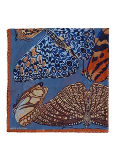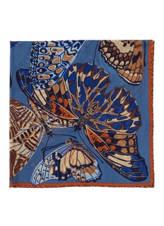 Elevate your accessory collection with the INOUI Editions Butterfly Square Scarf. This luxurious scarf features an exquisite display of butterfly prints in a harmonious blend of blues and oranges, capturing the essence of nature's beauty. Crafted from soft, premium fabric, it offers both warmth and versatility. The rich colors and detailed patterns make it a perfect piece for draping over your shoulders or tying around your neck to add a touch of elegance to any outfit.