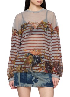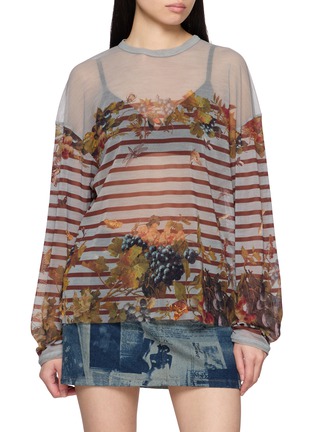 JEAN PAUL GAULTIER - Oversized Long Sleeve Marinière Grape Print Mesh Top