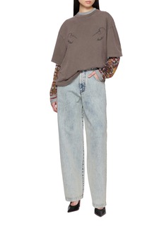 An oversized essential elevated through Jean Paul Gaultier’s needle motif embroidery, this T-shirt balances restraint with quiet provocation. Cut from soft cotton, it drapes effortlessly—ideal with worn-in denim or tailored trousers for an understated, directional look.