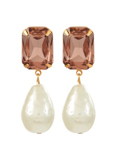 Elevate your elegance with the Liana Earrings, a classic pearl drop reimagined. Handcrafted in New York, these exquisite earrings feature faux pearls delicately dangling from dazzling emerald-cut Czech crystals. This harmonious combination of fine materials ensures dynamic movement and a sophisticated flair.