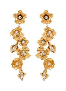 Drawing inspiration from Viennese Art Nouveau design, the Vanora Earrings imbue a refined look. Made by hand in New York, this earring is dripping with 18k gold-plated flowers, set with Austrian crystals in special cuts that emphasise the unique shape of each floral element.