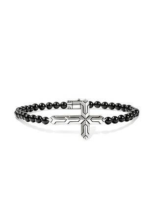 John Hardy pays homage to their 50th year of artisanal craftsmanship with the Icon 50 collection, as showcased in this sterling silver cross bracelet. The timeless cross design is juxtaposed against treated black onyx beads to impart a refined, elegant allure.