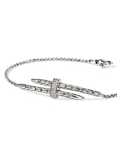 JOHN HARDY Spear Sterling Silver Diamond Pave Rolo Chain Station Bracelet — Size US