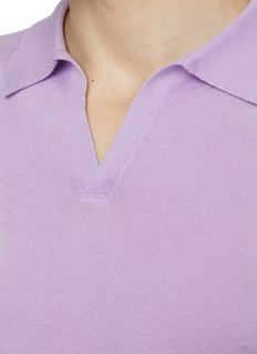 Effortlessly suave in soft lavender, this John Smedley polo merges heritage craftsmanship with serene summer energy. Featuring a minimal skipper collar and refined knit structure, it’s ideal for coastal escapes or gallery strolls where understated elegance speaks volumes.