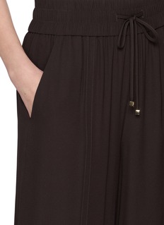 Designed for fluid movement and everyday ease, these trousers reflect Joseph’s refined approach to modern tailoring. The wide-leg silhouette is balanced by a softly structured waistband, while pintucked seams lend quiet polish—effortless styled with knits, shirting, or elevated evening tops.