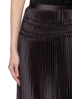 Intricate pleating meets artisanal detail in this fluid midi skirt, where hand-stitched smocking softly defines the waist before falling into elegant movement. Crafted by Joseph in a silk-like woven fabric, it brings quiet texture and refinement to both everyday styling and evening dressing.