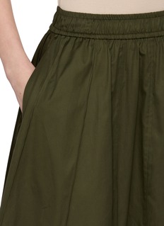 Clean lines meet everyday ease in this softly structured midi skirt, crafted from smooth cotton sateen with a subtle sheen. The elasticated waist and fluid A-line silhouette offer comfort without compromising polish—ideal for pared-back daytime looks or elevated casual evenings.