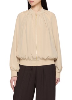 Soft volume meets quiet precision in this jacket, shaped with gentle gathers through the neckline and sleeves. Joseph balances fluid movement with a streamlined zip front, creating an effortless layer that elevates everyday looks—from tailored trousers to relaxed denim.