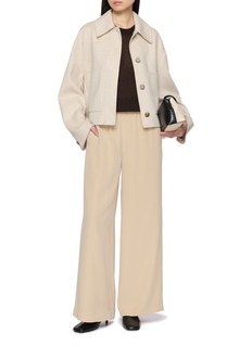 Defined by Joseph’s signature balance of fluidity and structure, these satin twill pants fall into a long, streamlined silhouette with an understated sheen. An elasticated waistband ensures effortless comfort, while the wide-leg cut lends quiet elegance from daytime refinement to evening ease.