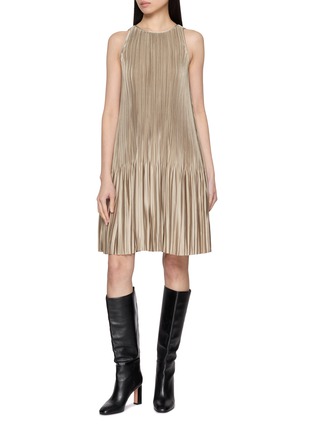 An exploration of movement and light, this pleated satin dress channels Joseph’s refined minimalism through a fluid, softly structured silhouette. Vertical pleats create gentle rhythm and depth, while the sleeveless cut lends ease—effortlessly poised for daytime occasions or understated evening wear.