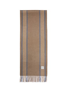 nfuse your living space with the timeless elegance of this JOVENS throw blanket. The classic taupe base is beautifully accented with bold blue stripes, creating a striking visual contrast. Crafted from high-quality fabric, this throw not only offers warmth and comfort but also acts as a chic decorative element. Its fringed edges add a touch of playful charm, making it an ideal addition to both modern and traditional decors.