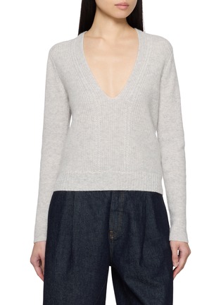 Light in hand yet rich in texture, this sweater by Jovens showcases pure cashmere through fine ribbing and delicate cable lines that run vertically to elongate the silhouette. The plunging V neckline adds a subtle femininity, styled effortlessly with denim or tailored separates.