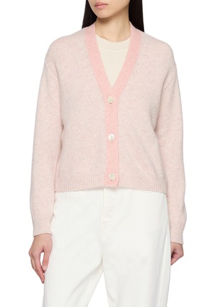 Softly luminous, this Jovens cardigan plays with delicate tri-tone hues woven through a fine knit, subtly accented with beading for a gentle shimmer. Framed by a V-neckline and button front, it layers gracefully over simple knits or dresses for polished everyday wear.