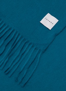 This JOVENS scarf, crafted in sumptuous cashmere, is presented in a striking teal hue that adds a vibrant touch to any ensemble. The rich color depth and luxurious softness make it a standout accessory, perfect for adding a splash of color to neutral outfits. Finished with playful fringes, it combines classic style with a modern twist, ensuring it's not only a warm winter companion but also a chic statement piece.
