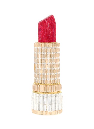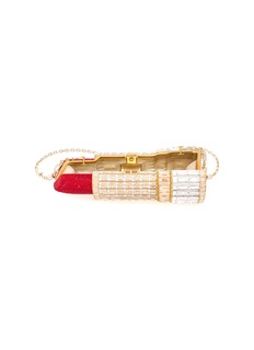 Reveal a masterstroke of opulent elegance with our Lipstick Seductress crystal clutch, a stunning handbag that effortlessly fuses haute fashion and playful beauty. With glistening gold baguette crystals at the base and crowned with a bold, ruby red tinted crystal tip that is reminiscent of your favourite lipstick.