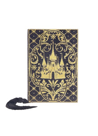 The Judith Leiber Storybook Fairytales clutch is a book-shaped whimsical masterstroke—where fantasy and heritage converge in a couture-forward tale. Shaped like a treasured tome, its black crystal base creates a velvety canvas for the hand-set gold castle motif, evoking fairy tale enchantment with the precision of haute joaillerie.
