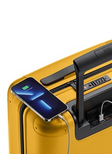 The Carry On suitcase effortlessly blends form and function to create a travel essential for the world voyager. With a sleek design and bumpers to protect against external damage, it's perfect for journeys long or short. The ejectable battery with USB and USB-C docks charges phone and laptop, while the 100% aerospace-grade German polycarbonate and curved eggshell design ensure durability and optimal packing space.