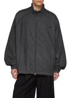 Tailored ease meets athletic codes in this Juun.J track jacket, crafted from softly structured wool. Clean lines and a fluid drape refine the sporty silhouette, while the back vent enhances movement—ideal for city layering from commute to evening.